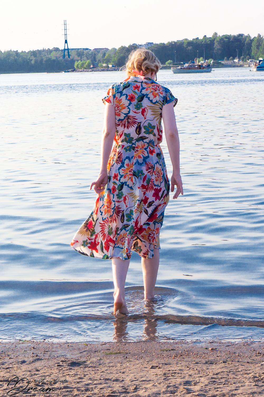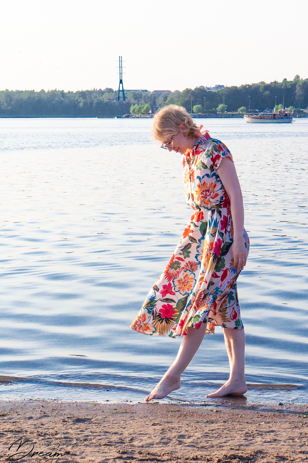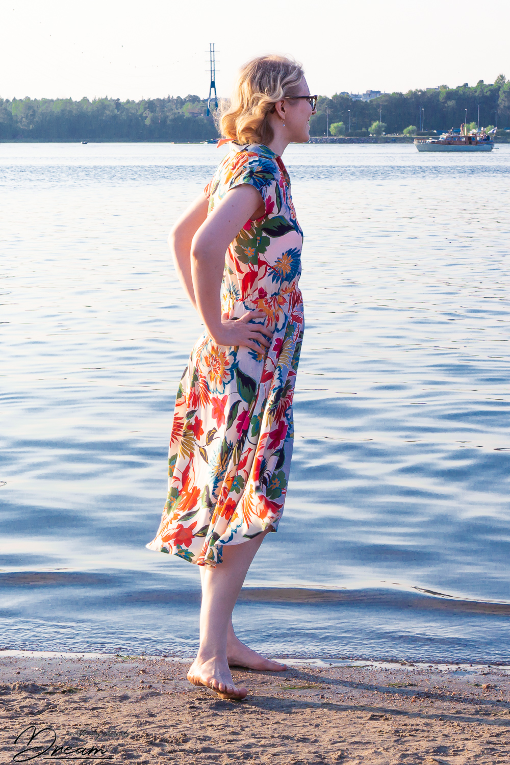 I did not have much time so I did not check the length of the hem properly. I think this dress would look more flattering if it were two inches shorter since now the hem ends up at the widest part of my calf making my legs look thicker. Of course, wearing heels would also help but who has time for heels during the summer? In fact, I have become so comfortable walking barefoot that I forgot my shoes at my parents’ summer cottage today. Luckily my mum spotted the sneakers that I left behind before we were too far away to turn back!