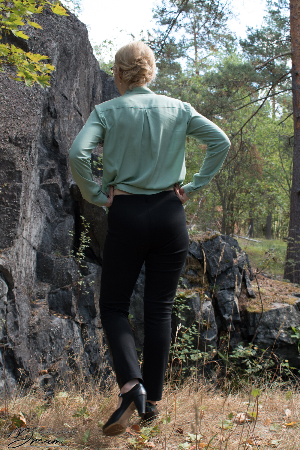 I‘m back once more with my Sensible Sewing challenge. This far I have managed to finish all the makes but it will take some time to post all of them! This time I show the V1440 Donna Karan collection leggings. I actually made two pairs, but the other one is just your basic black pair and nothing very interesting. After making that, I wanted to do something different. I have stored a piece of black leather for a long time in my stash. I decided to use the leather to decorate the bottom part of the front trouser legs.