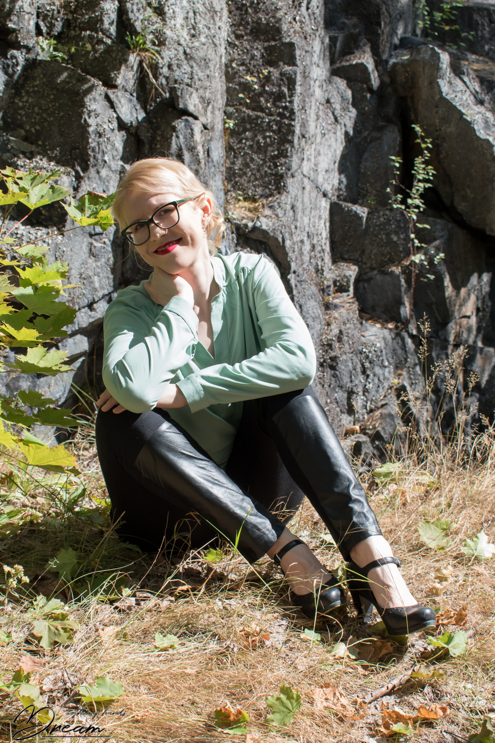 I‘m back once more with my Sensible Sewing challenge. This far I have managed to finish all the makes but it will take some time to post all of them! This time I show the V1440 Donna Karan collection leggings. I actually made two pairs, but the other one is just your basic black pair and nothing very interesting. After making that, I wanted to do something different. I have stored a piece of black leather for a long time in my stash. I decided to use the leather to decorate the bottom part of the front trouser legs.