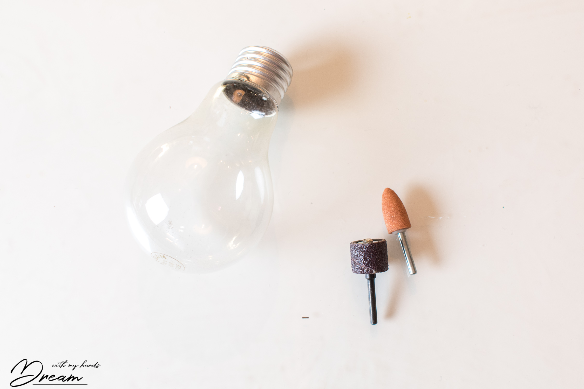 I used a fibreglass reinforced cut-off wheel attachment to cut away the top knob of the light bulb:
