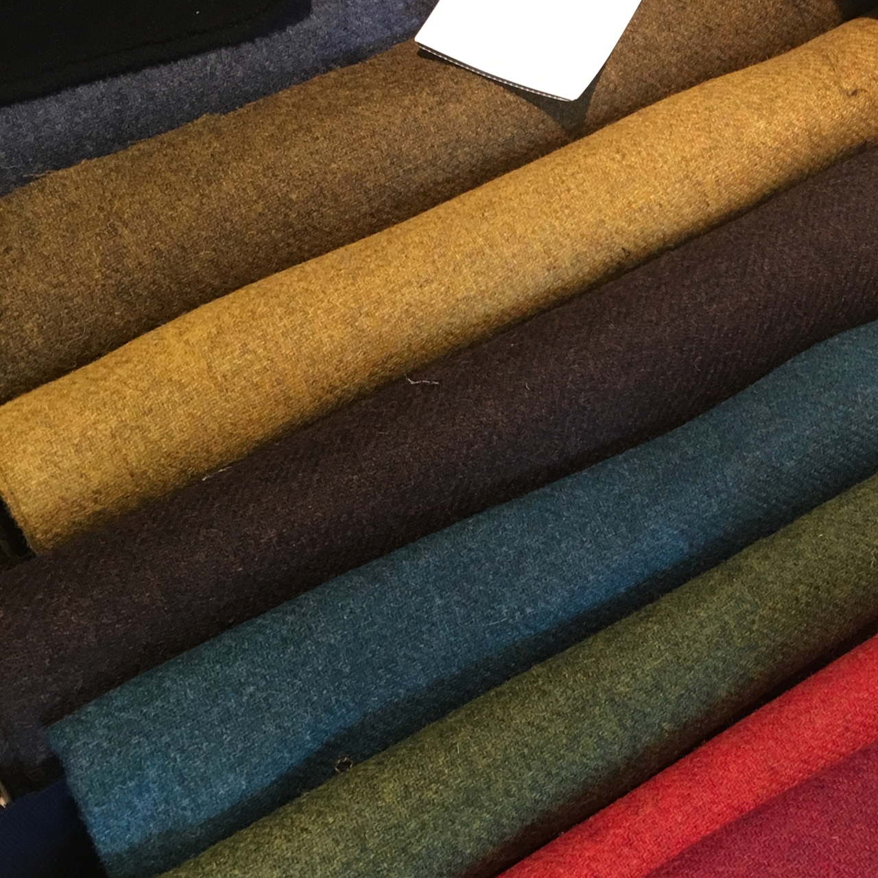 Feels a bit “hairy”, is warm and drapes well. Is usually more expensive a fabric and may need dry cleaning. Is warm and makes quality clothes. Wool clothes often require lining since the raw wool may feel itchy against skin.
