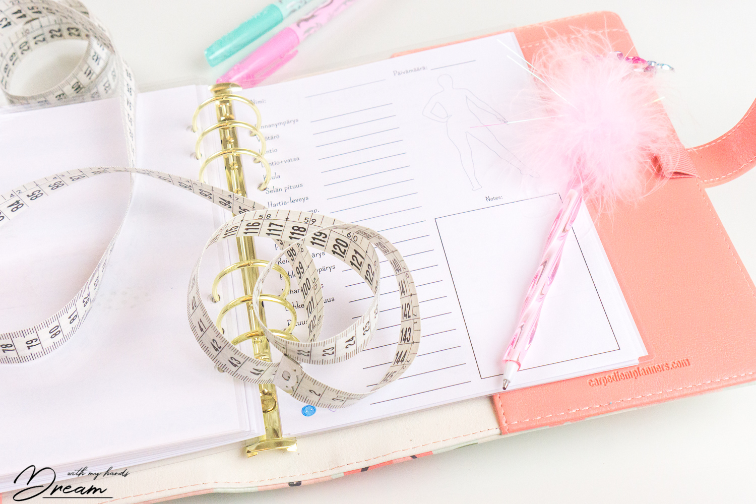 Mittoja jokainen ompelija joutuu ottamaan usein ja tässä mittataulukossa ne pysyvät kätevästi yhdessä paikassa. Näitäkin voi tulostaa vaikka jokaiselle perheenjäsenelle. Päivämäärätiedon avulla mitat pysyvät järjestyksessä.